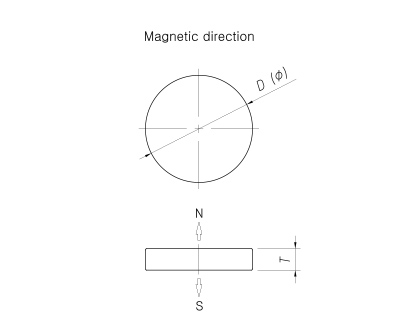 - 규격표시형태; 외경/지름 ( D / Φ ) x 두께/높이 ( T / 자력방향 )